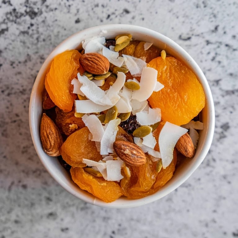 Save A vibrant, healthy snack featuring sweet dried apricots and crunchy almonds, perfect for a quick energy boost or elegant cheese board addition.
