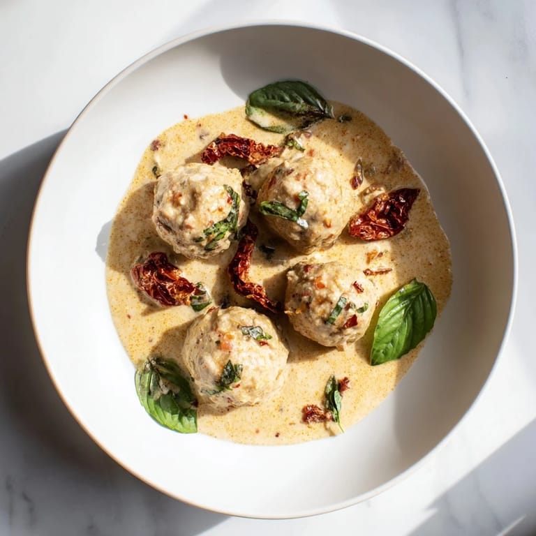 Save My neighbor knocked on my door holding an empty casserole dish and wearing the biggest grin. She'd made these meatballs for her boyfriend the night before, and by morning, he'd asked her to move in. I laughed it off until I made them myself—now I understand. The way the cream clings to each tender meatball, the bright punch of sun-dried tomato cutting through all that richness, the parmesan melting into silk. It's the kind of dish that makes people lean back in their chairs and sigh.