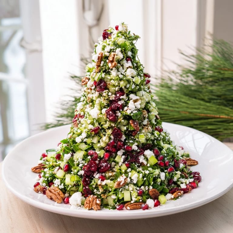 Save A festive, vibrant salad shaped like a holiday tree, featuring tangy feta, sweet cranberries, crunchy nuts, and fresh herbs—perfect as a centerpiece dip for celebrations.