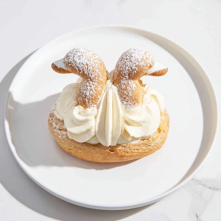 Save Charming, light choux pastry swans filled with vanilla cream and dusted with powdered sugar—perfect for an elegant dessert or tea-time treat.