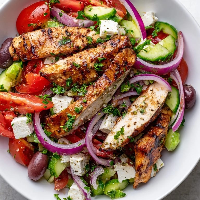 Save There's something about the smell of chicken hitting a hot grill that instantly transports me back to a sun-soaked afternoon on my friend's patio, where we discovered that the simplest combinations often taste the best. She had just returned from a trip to Greece and was determined to recreate the salads she'd eaten every day, so we threw together whatever looked fresh at the market and charred some chicken. That meal became our go-to whenever we wanted something that felt both indulgent and impossibly light.