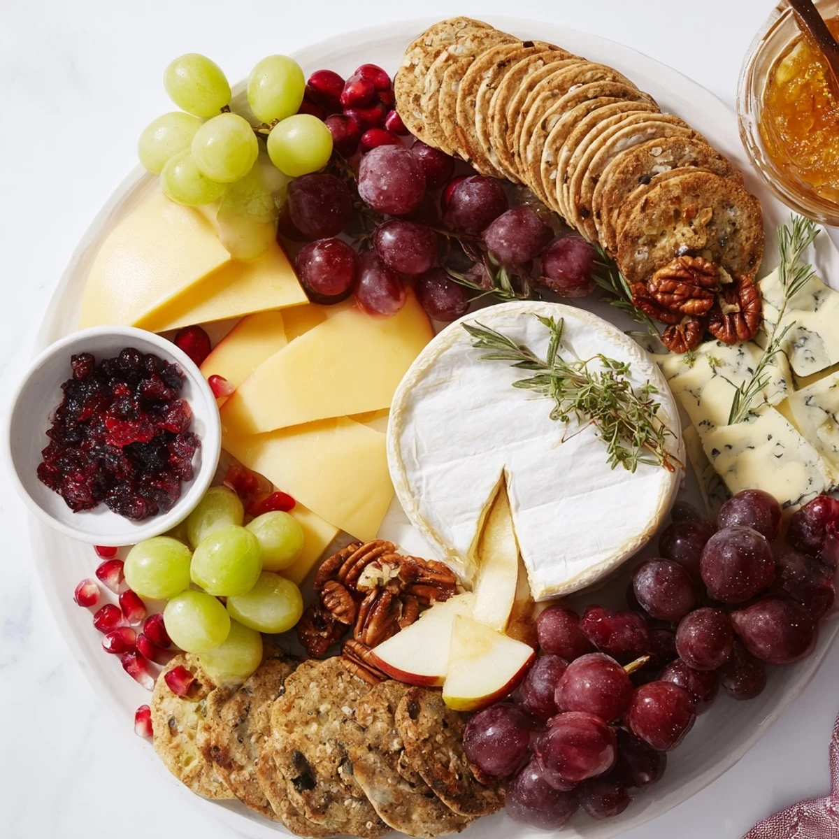This cheese board pairs beautifully with sparkling wine, Prosecco, or your favorite festive cocktail. Offering a variety of breads and crackers ensures everyone finds something they love to complement the rich and fresh flavors.