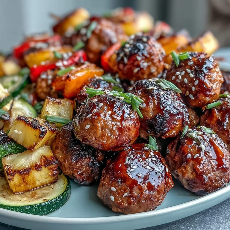 Pineapple brings natural acidity and subtle sweetness that prevents teriyaki from tasting one-dimensional and cloyingly sweet. The enzymes in fresh pineapple also break down proteins slightly during cooking, which sounds technical but basically means your meatballs taste even more tender when surrounded by these skewers. When the pineapple caramelizes under heat, those sugars concentrate and create this savory-sweet contrast that makes you take another bite before you've finished chewing the first one.