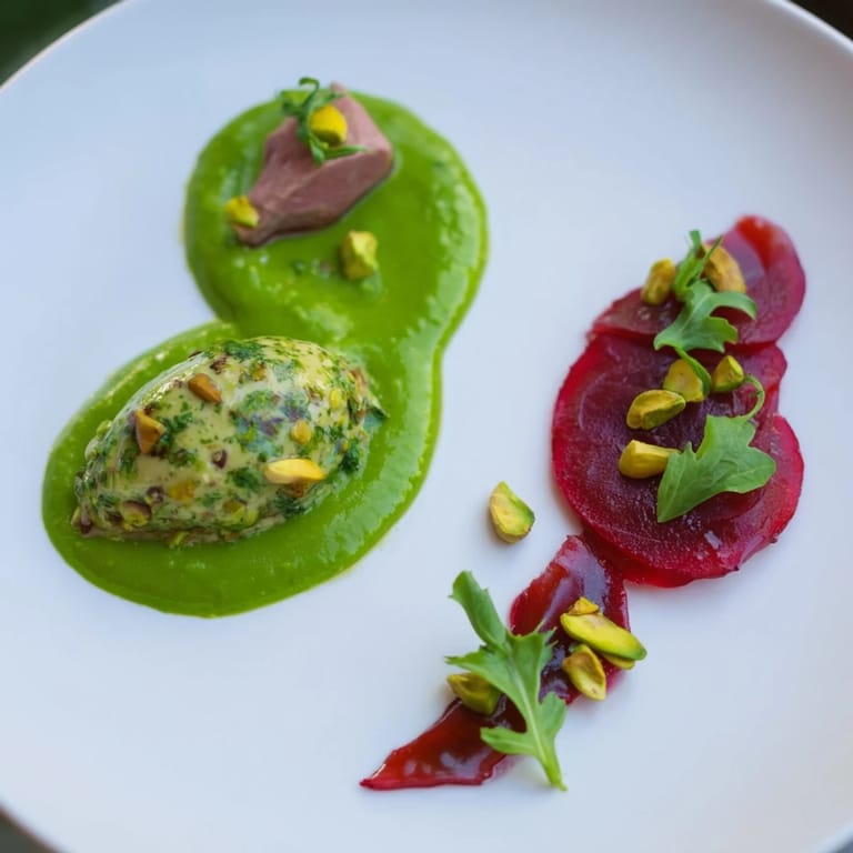 This recipe is crafted to celebrate seasonal freshness while offering a contemporary twist on classic French appetizers. Its thoughtful composition ensures each bite reveals a different texture and flavor profile, from the bright and creamy pea purée to the sweet tang of the beet carpaccio and the indulgent mousse crowned with crunchy pistachios.