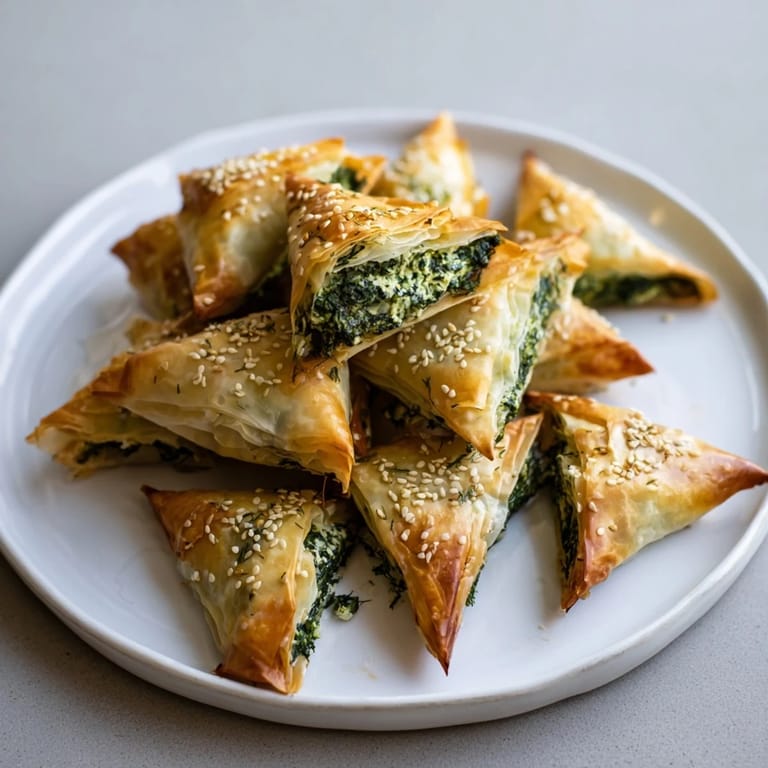 Adding a pinch of lemon zest to the filling can brighten the flavors and add a subtle citrus note. Keep your phyllo dough covered with a damp towel as you work to prevent it from drying out. When folding the triangles, patience and gentle handling will help maintain the crispness and shape. Remember to let the cooked spinach mixture cool slightly before combining with the cheeses to avoid soggy pastry.