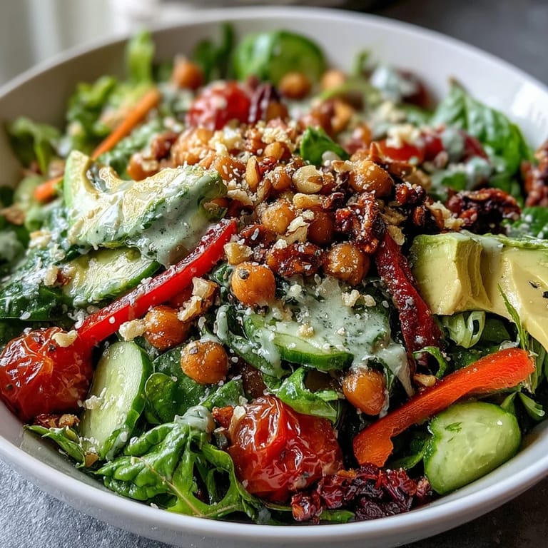 The beauty of this bowl is that it's genuinely flexible without losing its character. I've made it with lentils instead of chickpeas when I was out of canned beans, used massaged kale as my sole green when that's what I had, and swapped almonds for sunflower seeds because someone at the table had a nut allergy. Each version felt different but equally satisfying, which tells me the structure of the thing is solid enough to handle creativity.