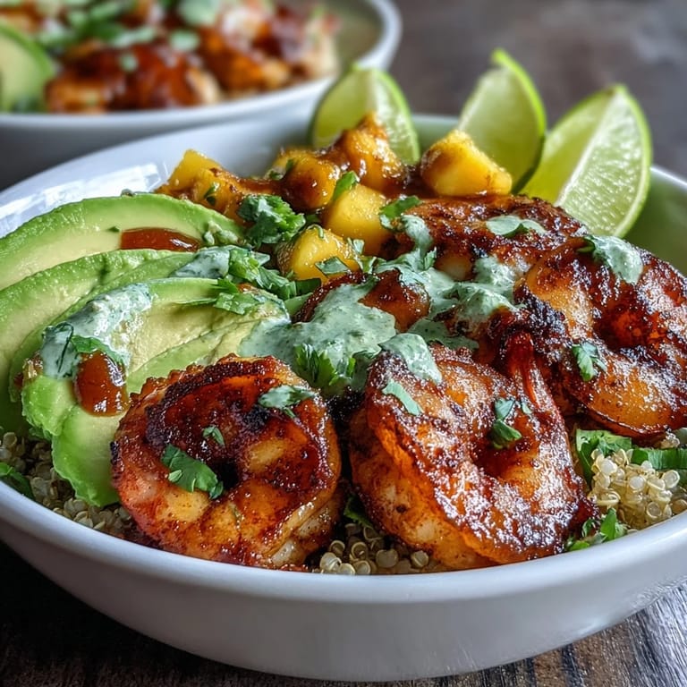 Save My neighbor brought back fresh shrimp from the coast one weekend, and I panicked because I had never grilled them before. I threw together what I had in the fridge: leftover quinoa, a perfect avocado, and a mango that was almost too ripe. The smoky smell from the grill pan mixed with the sweetness of the fruit, and suddenly I had something that felt like a real meal, not just a scramble. Everyone kept asking for seconds.