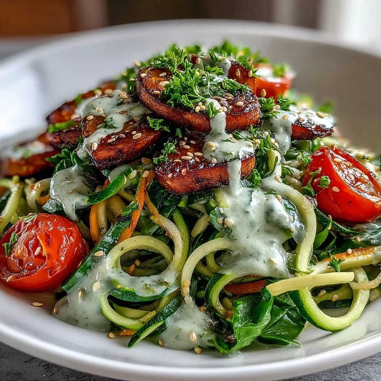 Save My spiralizer sat unused in a kitchen drawer for months until a friend mentioned she'd stopped feeling satisfied by heavy lunches at work. That simple comment stuck with me, and I started experimenting with colorful vegetable noodles one Tuesday afternoon. The sweet potato turned golden in the pan, the zucchini stayed delicate, and when I drizzled that creamy tahini sauce over everything, something clicked—this wasn't diet food, it was genuinely delicious. Now I make it whenever I want something that feels both indulgent and nourishing.