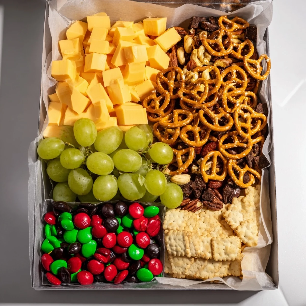 For a gluten-free version, simply substitute gluten-free pretzels and cookies. Vegan options can be achieved by using plant-based cheeses and chocolates. You can also swap mixed nuts for roasted chickpeas to accommodate nut allergies or preferences. Festive tins or gift boxes lined with food-safe paper provide an alternative to traditional boxes.