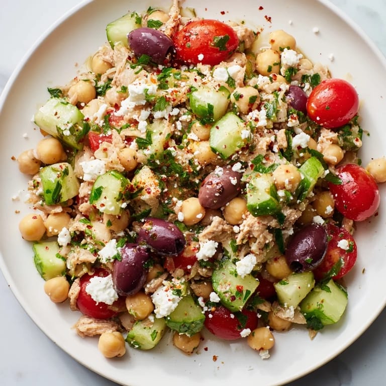 Save I discovered this salad by accident on a Tuesday when I had exactly two cans of tuna and a chickpea can staring at me from the pantry, paired with vegetables that were threatening to wilt. Instead of making something boring, I threw it all together with a quick lemon dressing, and my coworker practically stole the container out of my hands at lunch. That one bowl taught me that the best meals don't need heat or complexity, just good ingredients and a moment of kitchen courage.